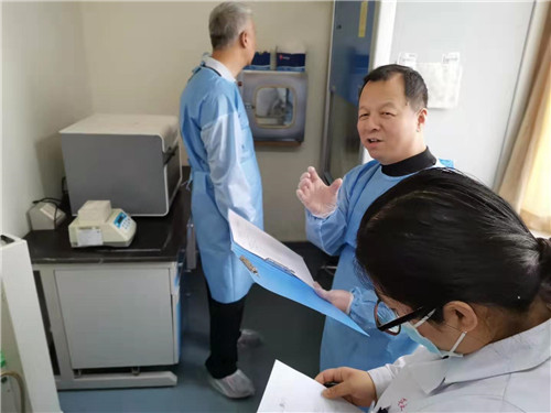本次由石家莊市第五醫(yī)院戴二黑教授,河北醫(yī)科大學第三醫(yī)院馮忠軍教授,河北省臨床檢驗中心強翠欣老師組成的專家審核組嚴格按照相關規(guī)定,從現(xiàn)場審核、現(xiàn)場提問和現(xiàn)場實驗三個方面對醫(yī)院實驗診斷學部的PCR實驗室進行了技術審核。