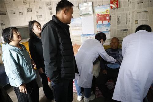 村委會義診活動結(jié)束后,在駐村第一書記的帶領(lǐng)下,幫扶責任人以及平安醫(yī)院義診分隊深入行動不便的老人家中,慰問他們的身體狀況和生活狀況,同時提供血壓、血糖等檢測服務(wù),讓留守老人感受到來自黨組織的關(guān)心與溫暖,有效化解了貧困村看病難看病貴的實際困難,真正把健康送到群眾家門口。
