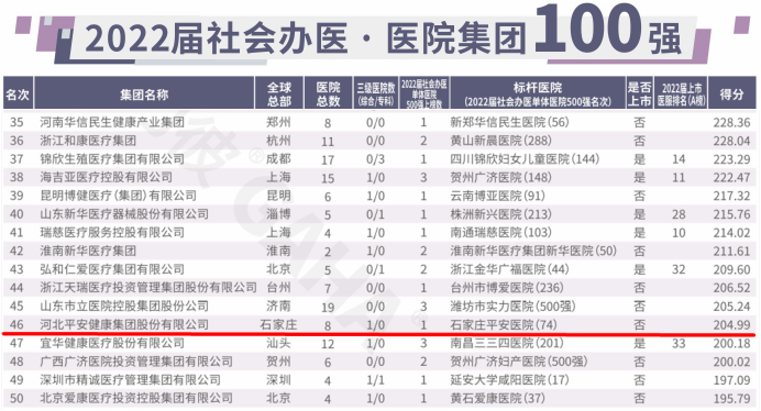 河北平安健康集團(tuán)升至“社會(huì)辦醫(yī)?醫(yī)院集團(tuán)100強(qiáng)”第46位