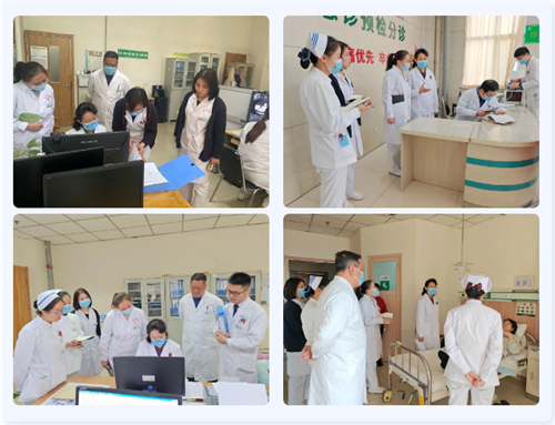 在急診科,張主任現(xiàn)場(chǎng)查看急危值記錄本,幫扶指導(dǎo)急診科完善記錄本不足之處。在普外科病區(qū),陳老師現(xiàn)場(chǎng)抽檢護(hù)士長(zhǎng)對(duì)病區(qū)患者分級(jí)的掌握程度,同時(shí)至床前調(diào)研術(shù)后患者就診體驗(yàn)并查看患者病歷書寫,同時(shí)調(diào)研手術(shù)分級(jí)管理制度、手術(shù)授權(quán)及院科制度等資料,對(duì)普外科相關(guān)工作給予肯定。
